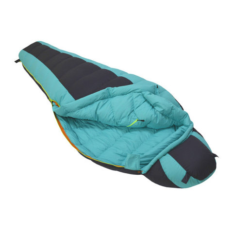 Спальный мешок формы кокон теплый для трехсезонного использования. Утепленная конструкция швов, воротника, ветрозащитная планка. Наполнитель гусиный пух.