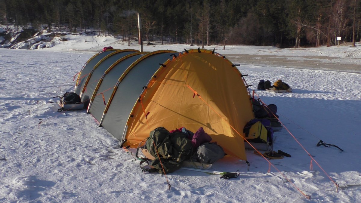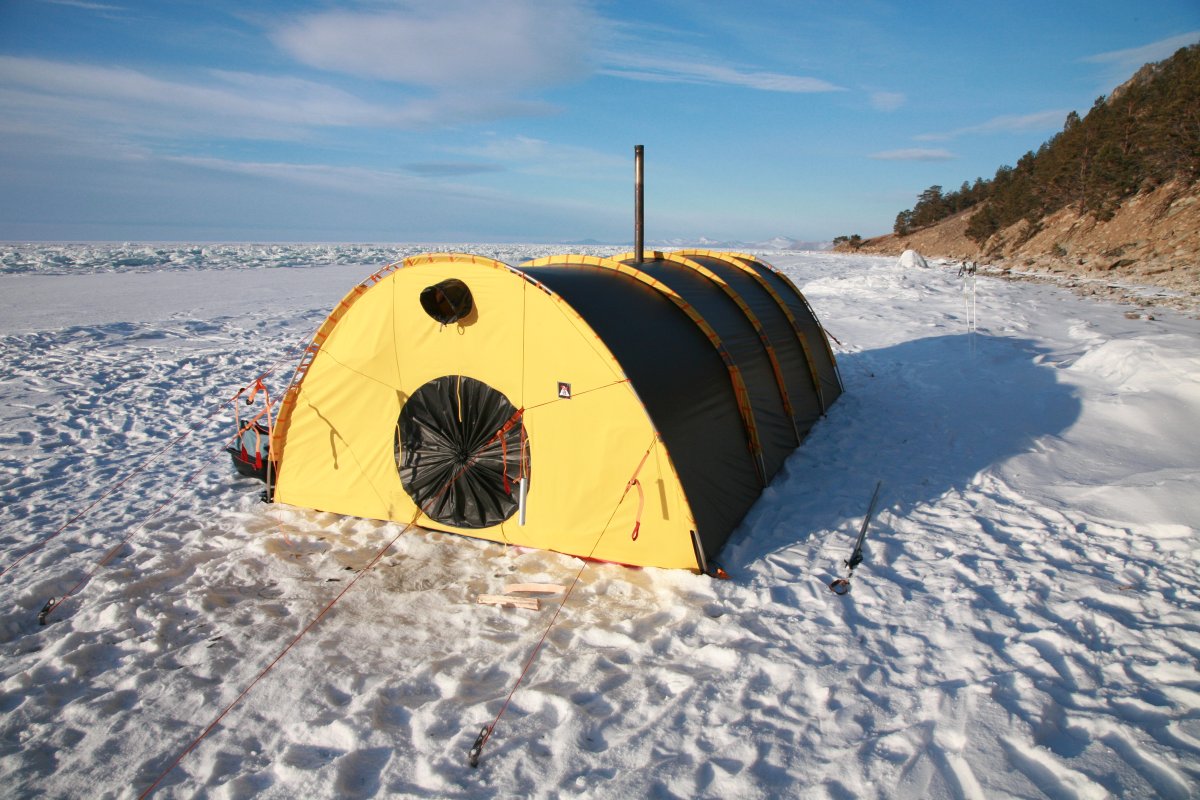 Большая Палатка Век Байкал-12 – зимняя туристическая палатка с уникальной трехслойной конструкцией. Идеально выдержала тесты на Полюсе Холода в Оймяконе при температуре -57 °C. Выпускается с 1998 года. Прошла несколько модернизаций улучшающих ее конструкцию. Рекомендуется для лыжных походов от 1 до 5 категории сложности, походов выходного дня, с использованием туристической печки. А также это лучшая палатка в своем классе для походов по тундре и Заполярью 5-6 категории сложности без использования печки и других отопительных приборов с опытом использования более 20 лет. Используется туристами фирмы ВЕК для коньковых походов по льду озера Байкал.