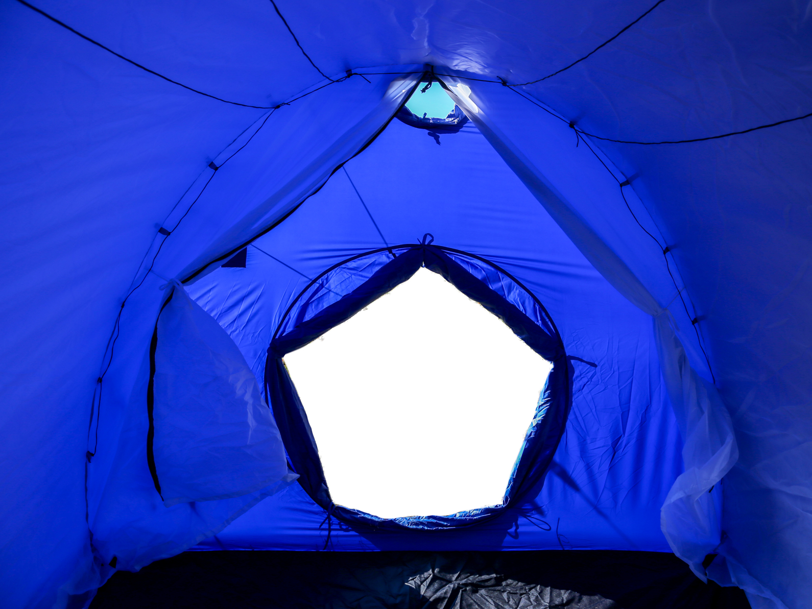 - В дне палатки расположен клапан на молнии – люк, позволяющий установить походную печку на землю или снег при необходимости