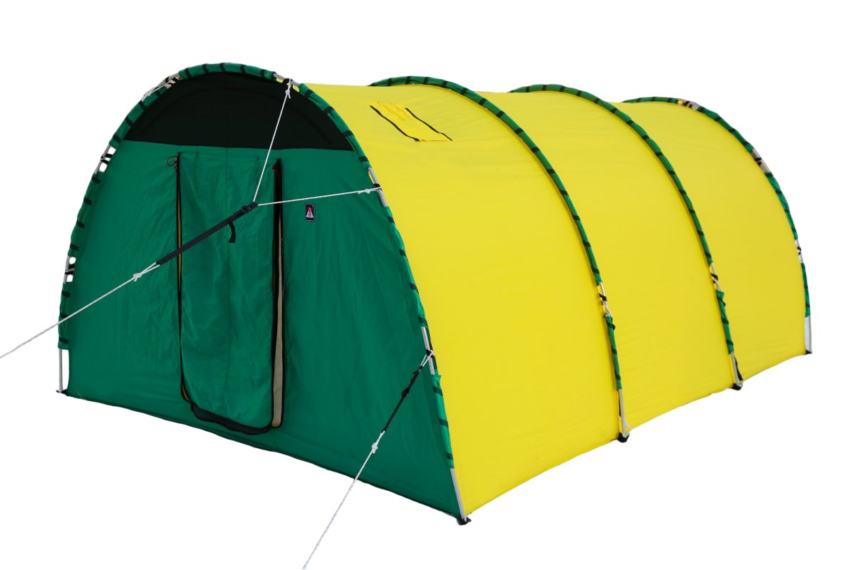 - Тип палатки – "полубочка". Устанавливается на алюминиевый разборный каркас повышенной прочности