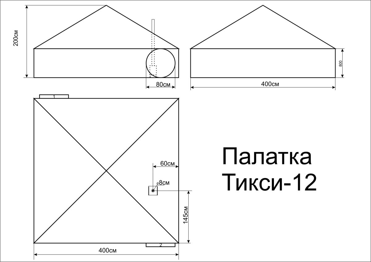 - Комплект: Палатка в чехле, разделка метал.250х250 d80, паспорт