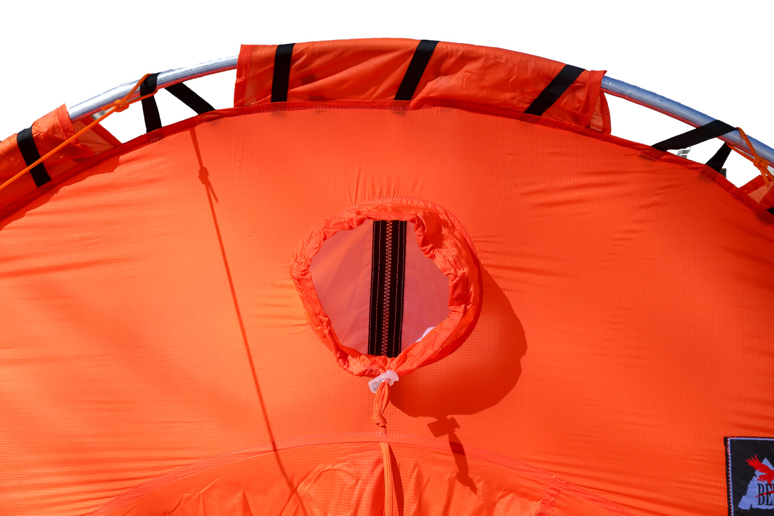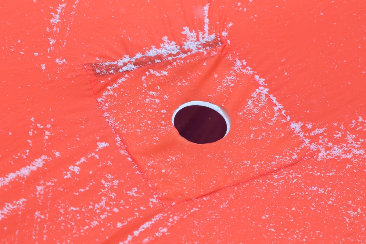 - В дне палатки расположен клапан на молнии – люк, позволяющий установить походную печку на землю или снег при необходимости и вымести из палатки мусор