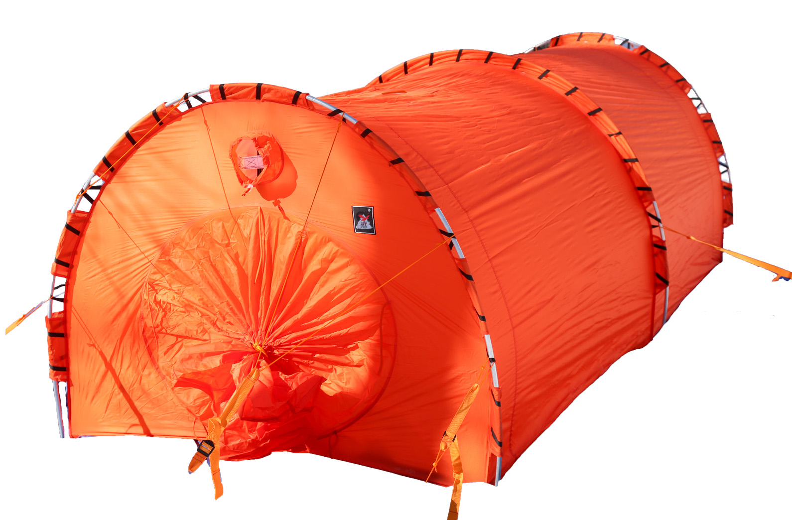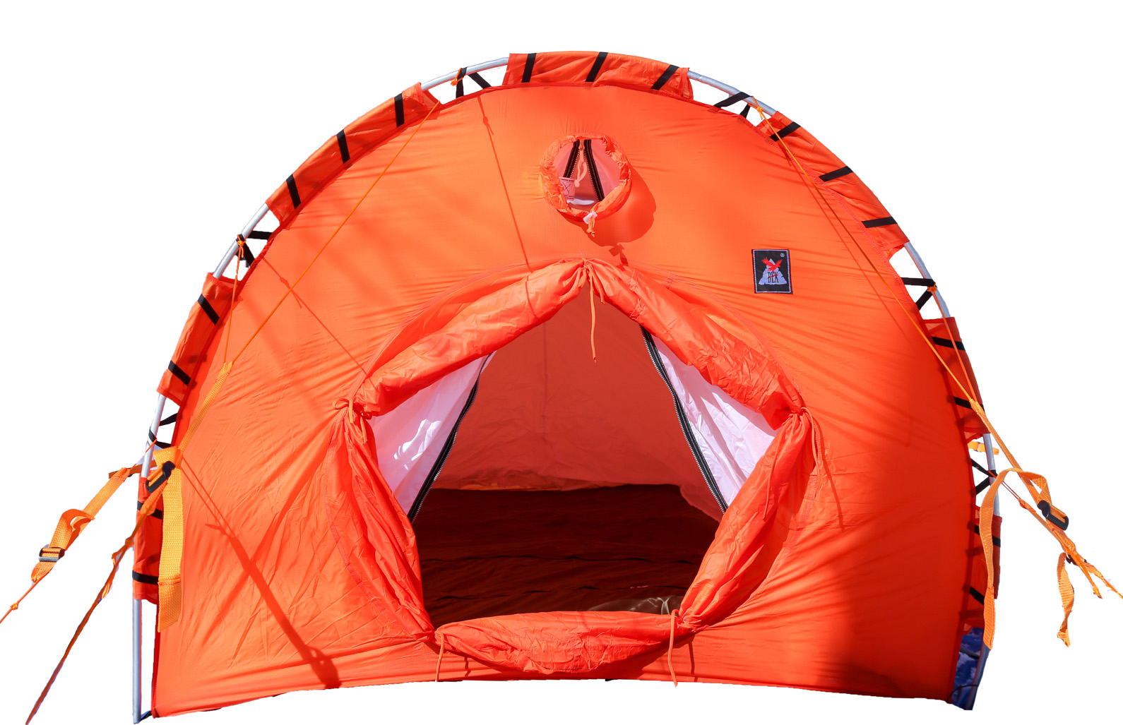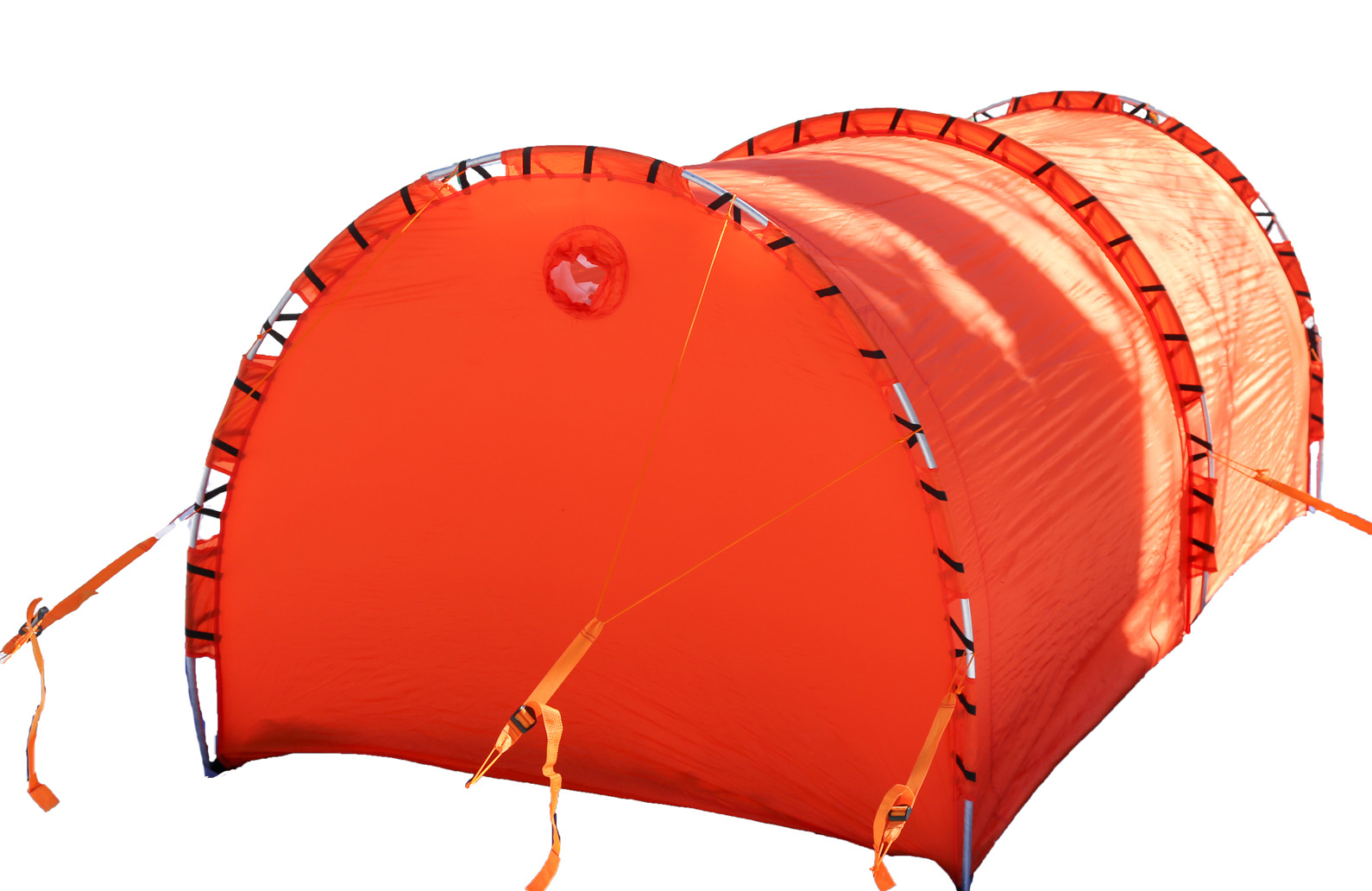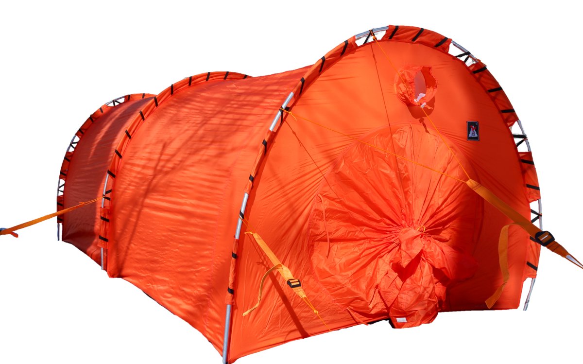 - В качестве дополнительного оборудования к палатке вы можете заказать ветроотбойный клин, который с помощью пряжек прикрепляется к торцу палатки. Его предназначение – уменьшить нагрузку на торец палатки при сильных ветрах, особенно в местах где нет возможности установить перед торцом палатки снежную стенку.