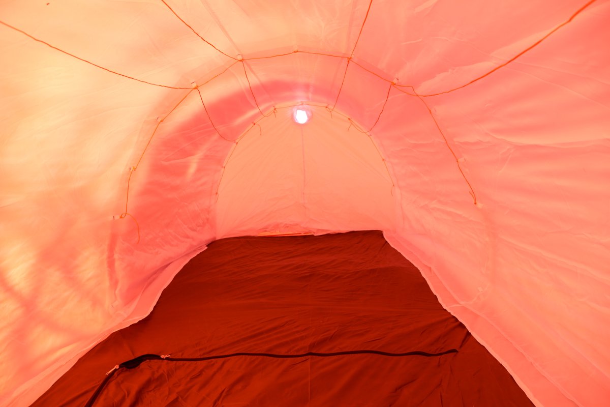 - Внутри палатки по всей длине расположены шнуры для просушки одежды и обуви в походных условиях