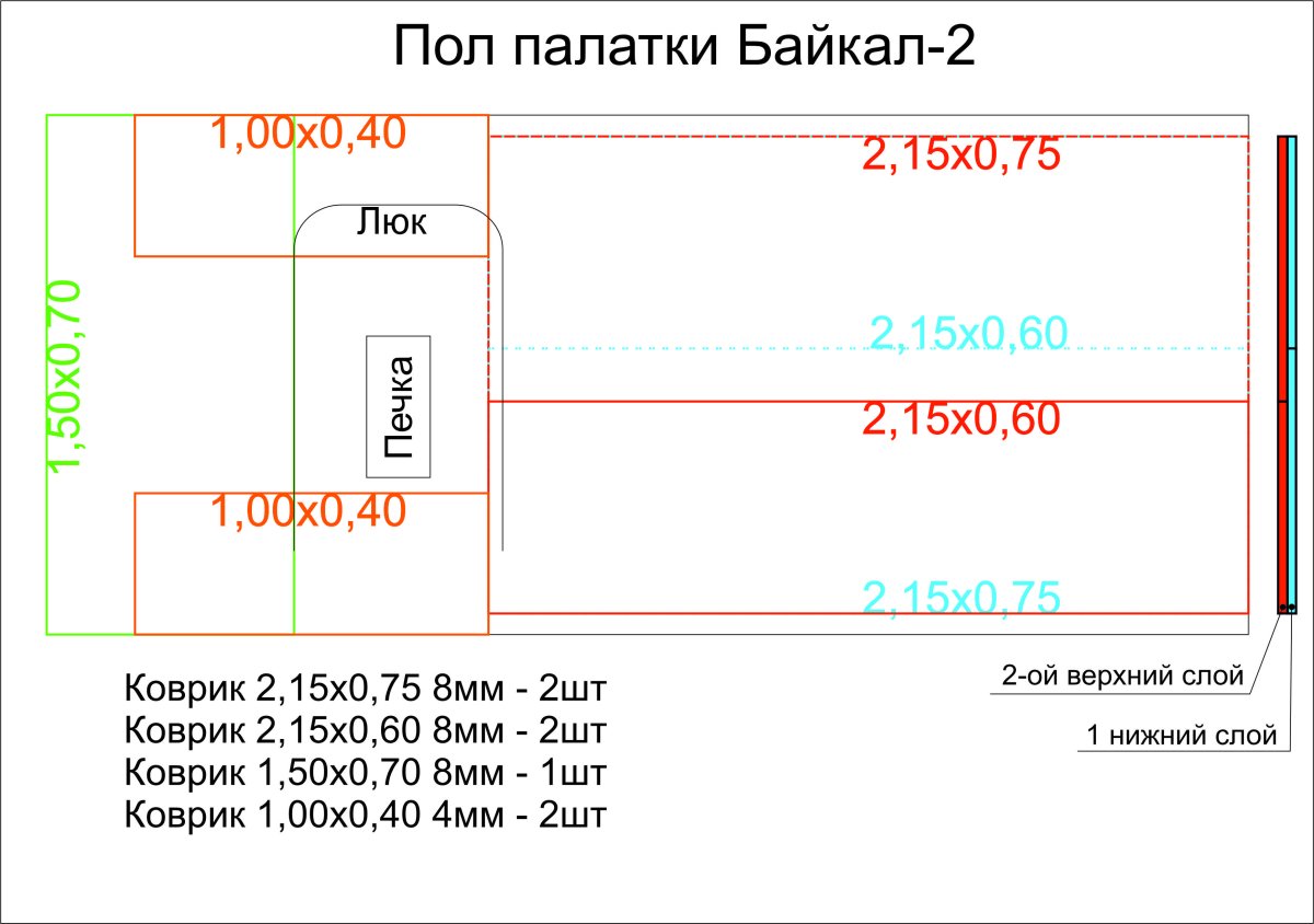- Предлагаем приобрести коврики для укладки пола в палатке согласно схеме. Данное расположение ковров не оставляет холодовых мест в палатке и способствует увеличению комфорта и тепла
