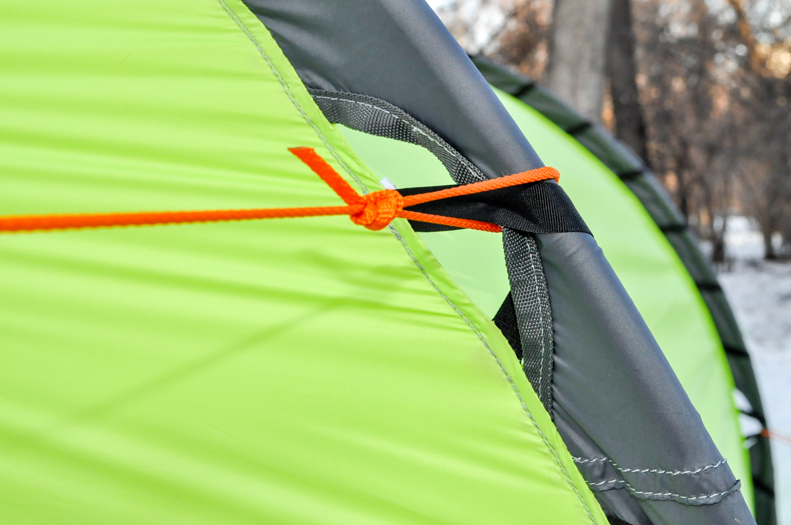 - Уникальная система оттяжек с пряжками для финишной подтяжки палатки