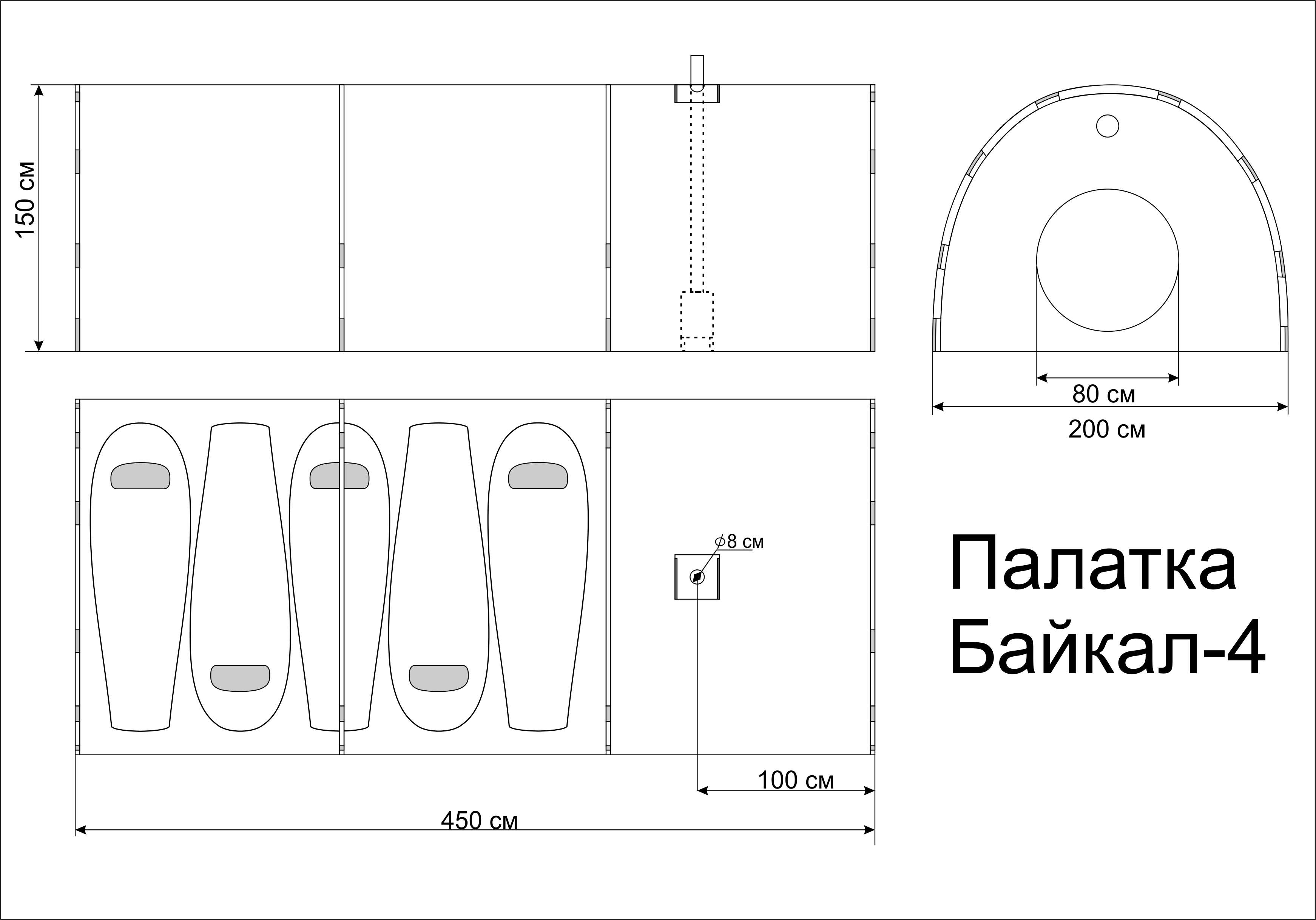 - Особенность палатки Байкал-4 в ее трехслойности. Трехслойная палатка работает по принципу "термоса", идеально удерживает тепло