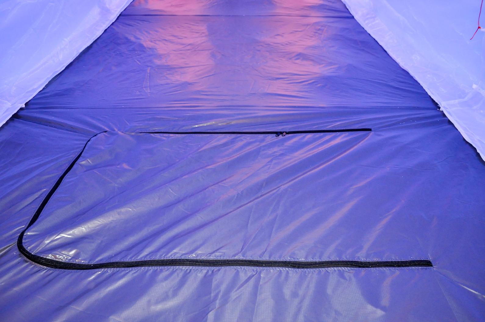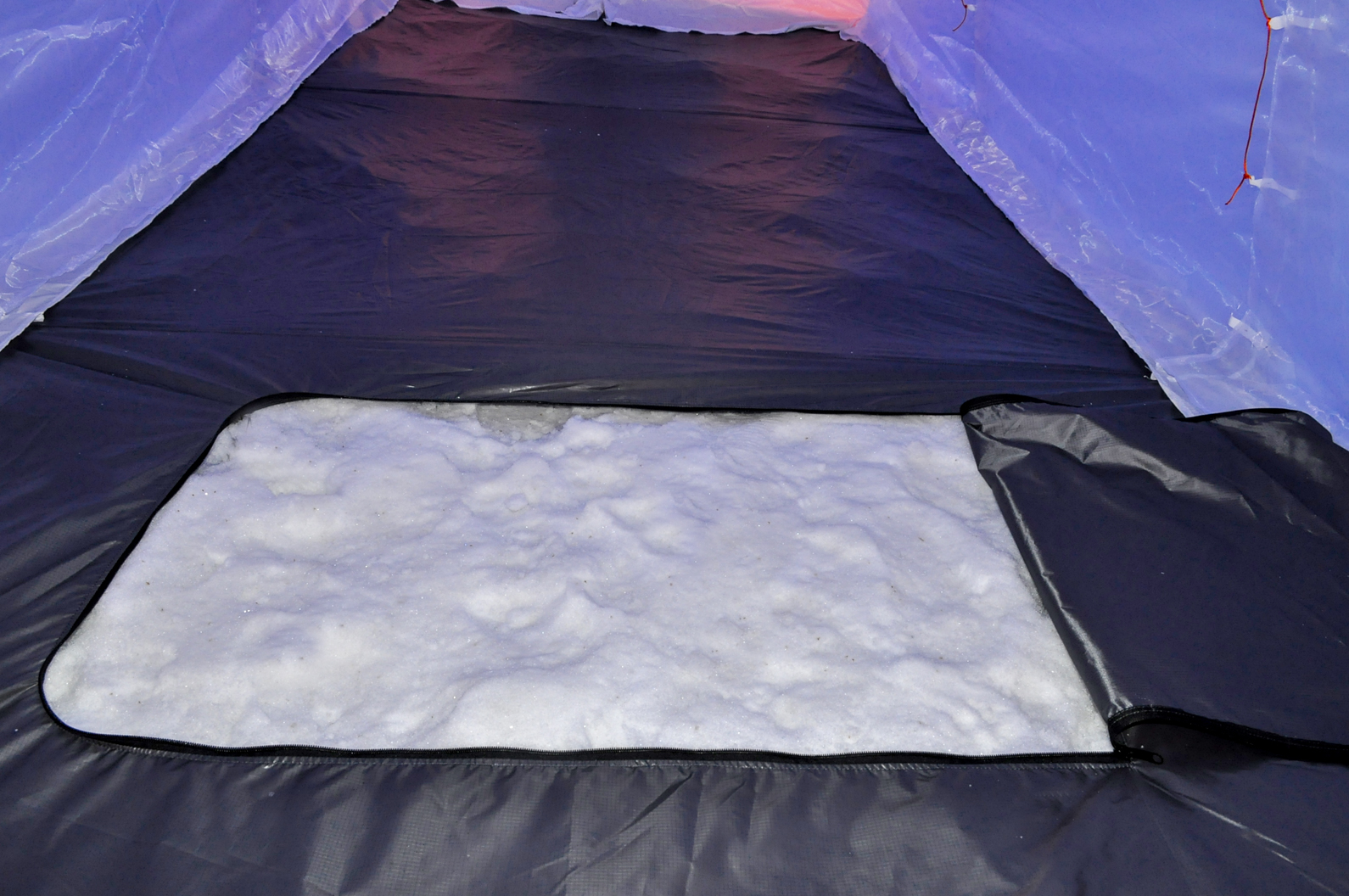 - В дне палатки расположен клапан на молнии – люк, позволяющий установить походную печку на землю или снег при необходимости и вымести из палатки мусор