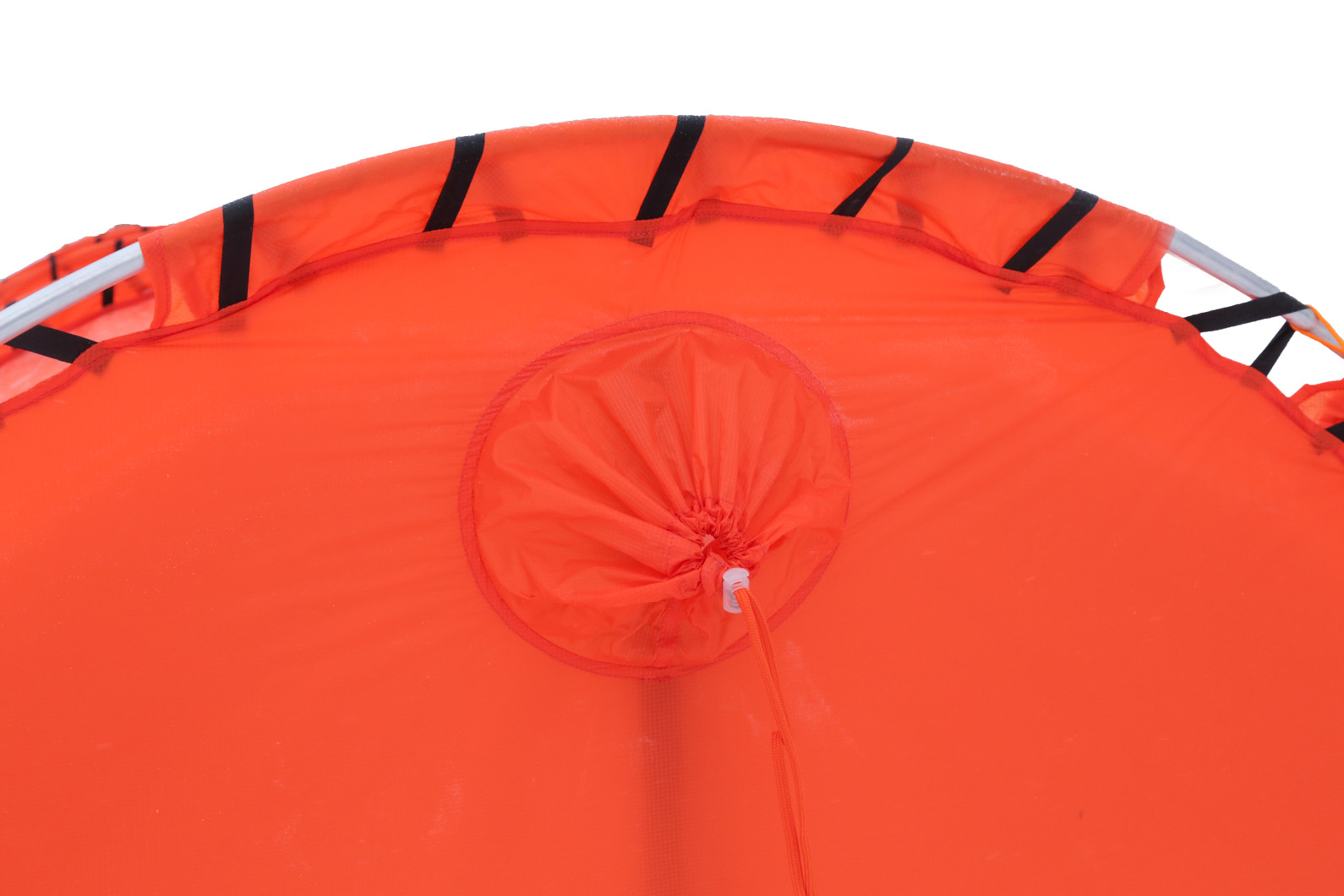 - В дне палатки расположен клапан на молнии – люк, позволяющий установить походную печку на землю или снег при необходимости и вымести из палатки мусор