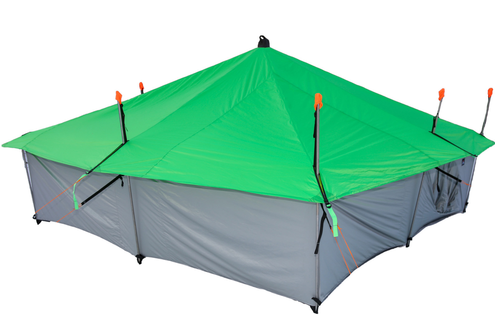- Тент имеет восемь оттяжек. Оттяжки снабжены удобной системой для финишной подтяжки тента
