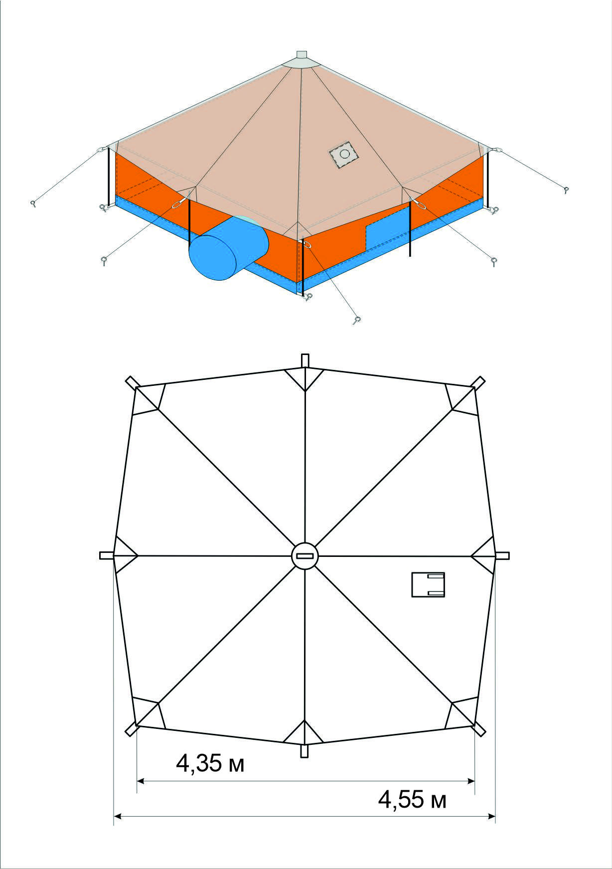 - Разработан специально для палатки-шатра Тикси-12. Тент используется в межсезонье для укрытия палатки от дождя и мокрого снега