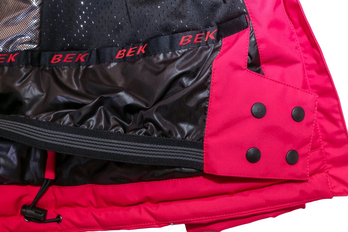 - Внутренняя ветрозащитная юбка, регулируемая по фигуре с резинкой с латексом, защищает от проникновения холода и снега под куртку