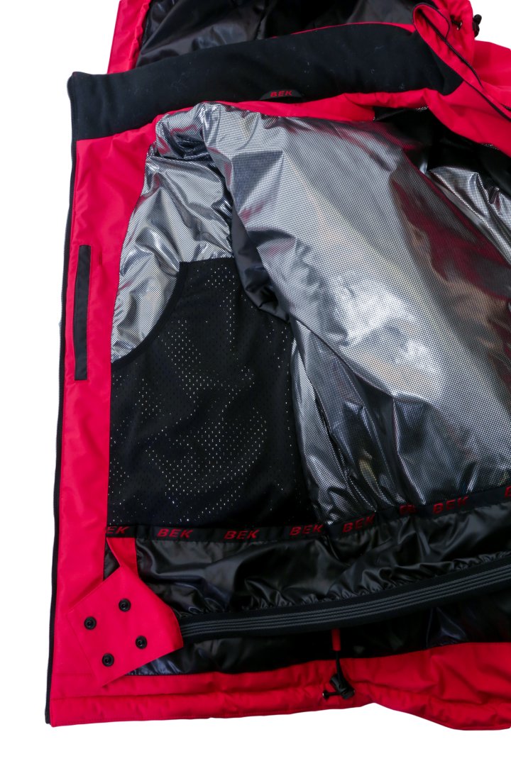 - В модели применена фольгированная подкладка – это инновационная ткань обеспечивает сохранение тепла за счет отражения его от серебряных точек. Такая подкладочная ткань прекрасно защищает от сильных морозов.