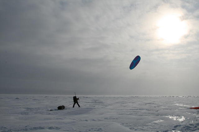 Отличная видимость, хорошее снежное покрытие, попутный ветер – все это способствовало быстрому скольжению на парашютах-буксировщиках. Это доступное средство передвижения в туризме.