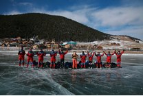 С 25 февраля по 3 марта команда из тринадцати человек стартовала в поселке Большое Голоустное и преодолела ледовую часть Байкала до острова Ольхона. Байкал - слово тюркского происхождения, что означает "богатое озеро". "Святое море" - так называли Байкал с незапамятных времен и коренные жители, и русские, пришедшие на его берега уже в семнадцатом веке, и путешествующие иноземцы, преклоняясь перед его величественной, неземной тайной и красотой. С Байкалом связано множество легенд, накопленных коренными народами за тысячелетия их соседства с уникальным озером. В частности, бытует предание о том, что Байкал связан неким сокровенным тоннелем с Охотским морем, расположенном от Байкала почти на полторы тысячи километров. Народности, живущие на берегах озера, верят, что души их умерших сородичей обитают в его водах.