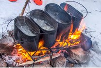 К кастрюлям и скороваркам приделывают проволочные дужки или цепочки для подвешивания над костром.